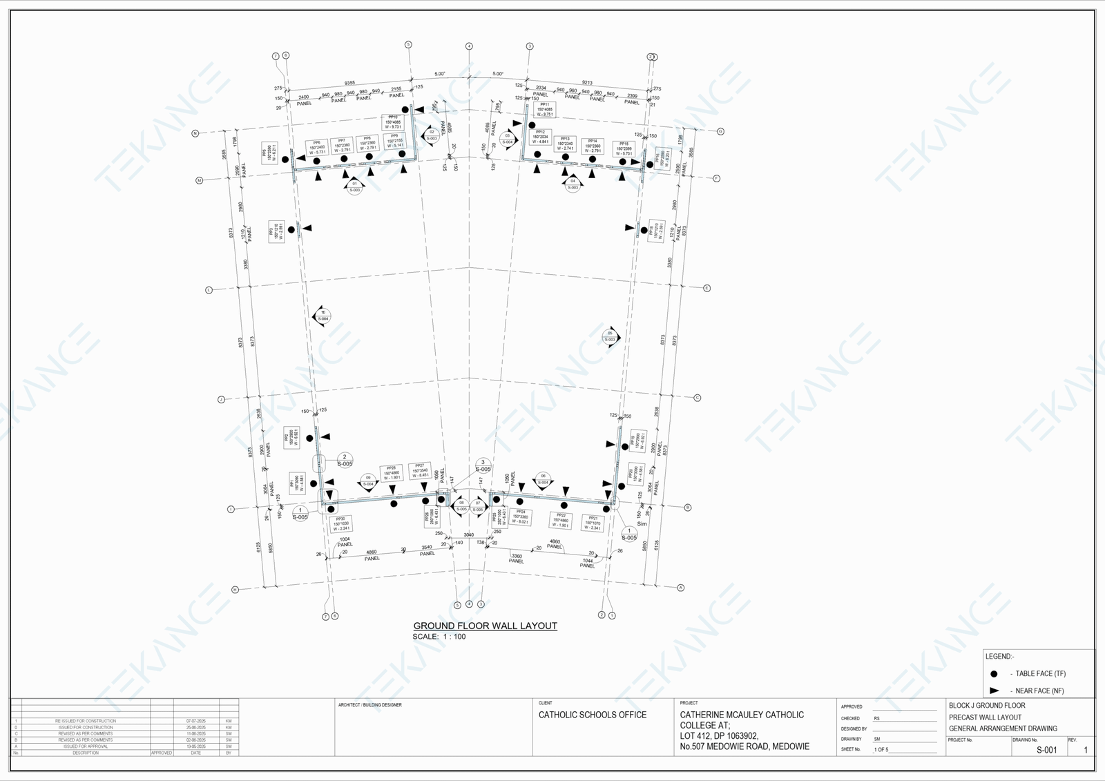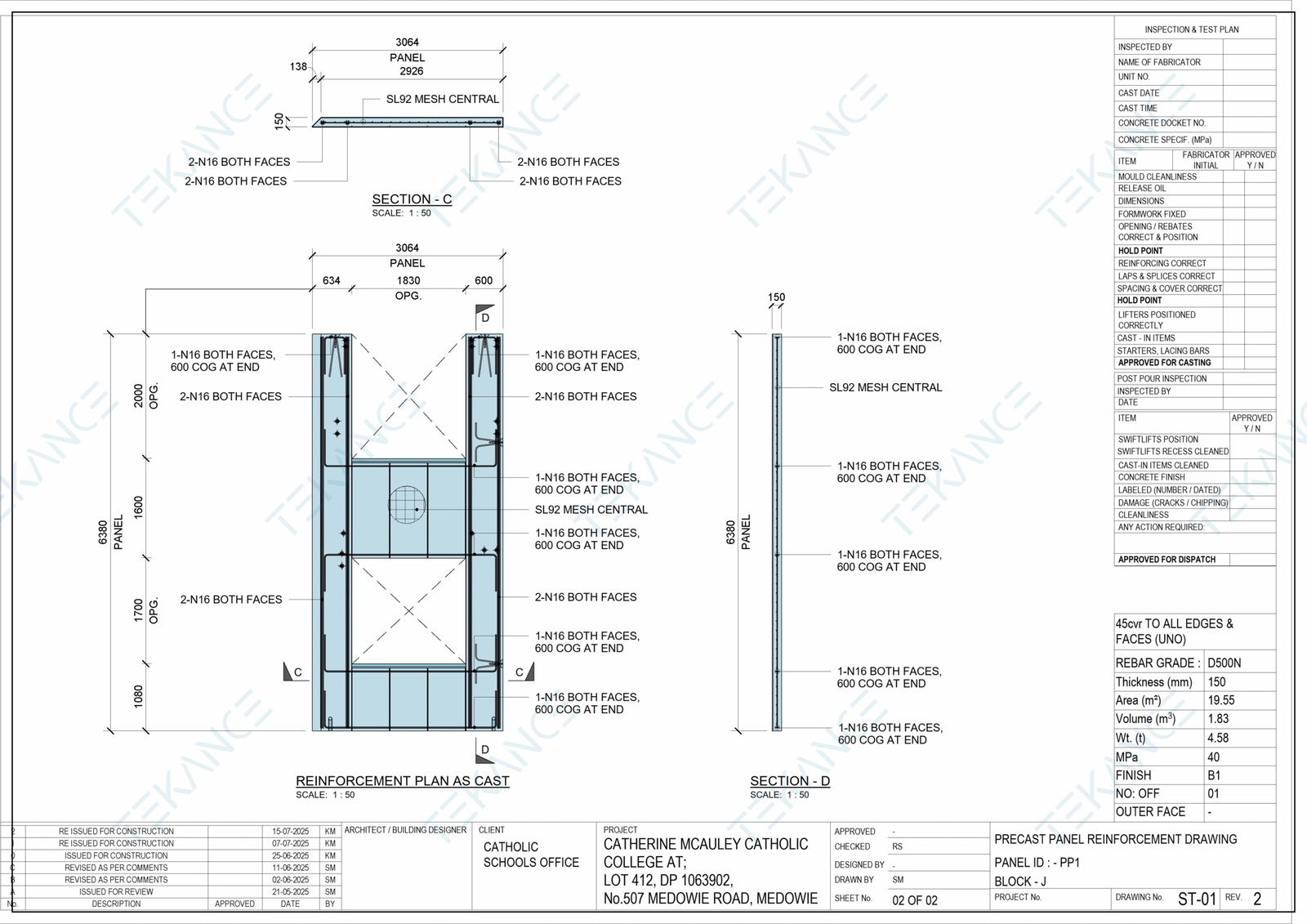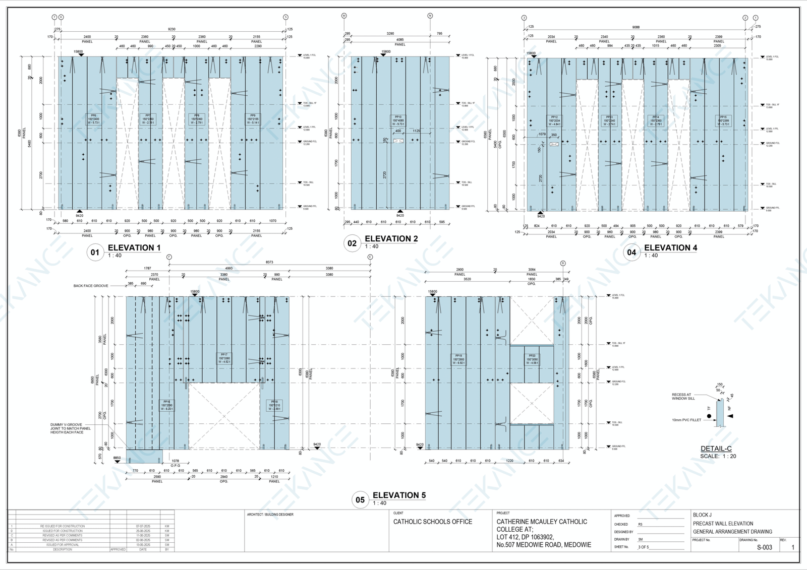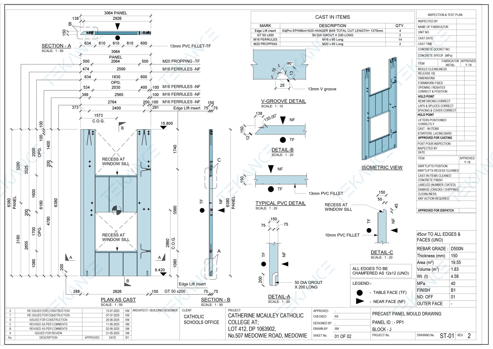 Our detailing package provided clear, buildable documentation for the precast manufacturer and erection crews. Reducing RFIs, improving dimensional control and helping the builder maintain program in a live school environment.